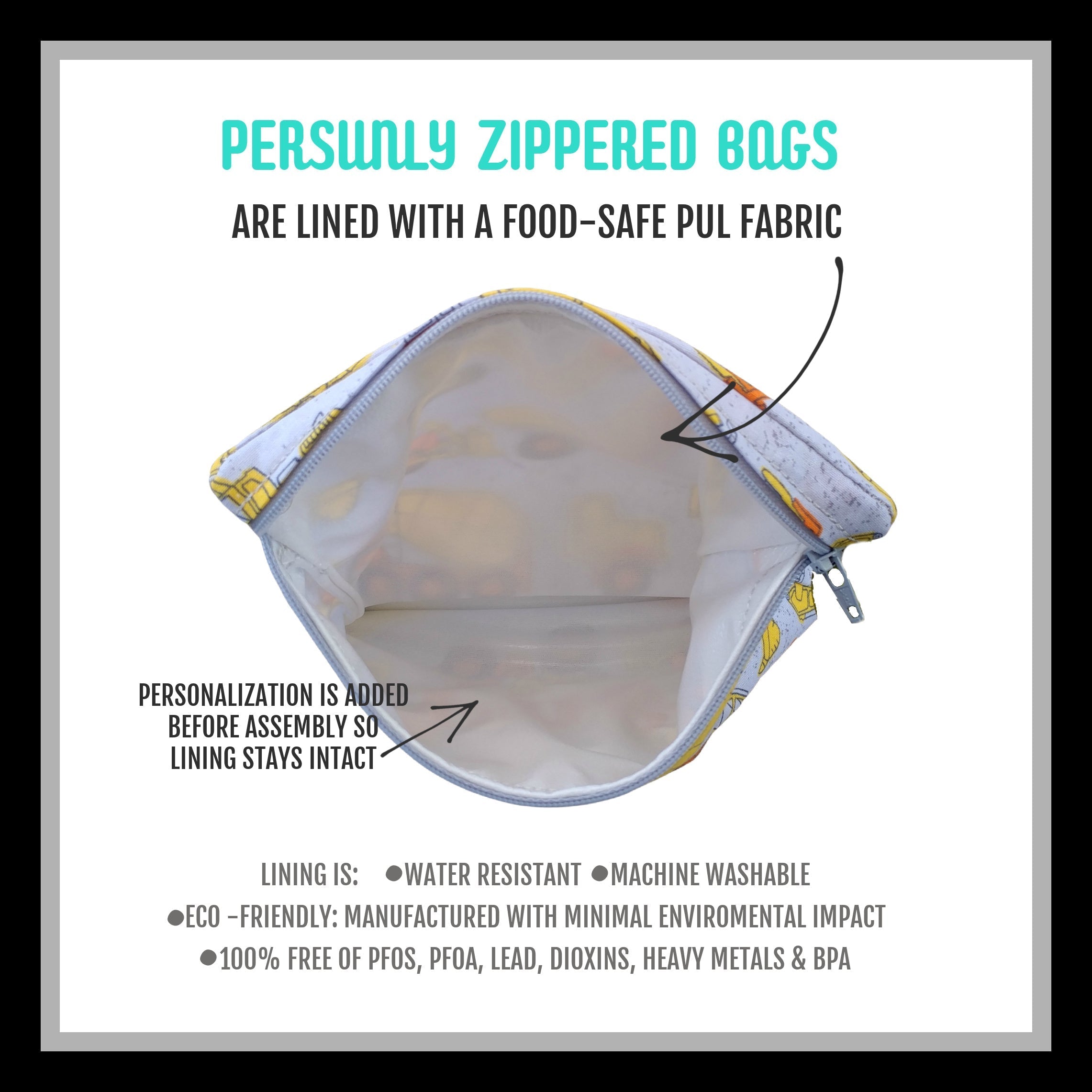 - Lined with food-safe PUL fabric which is waterproof, BPA free, Eco-Friendly and made North America.