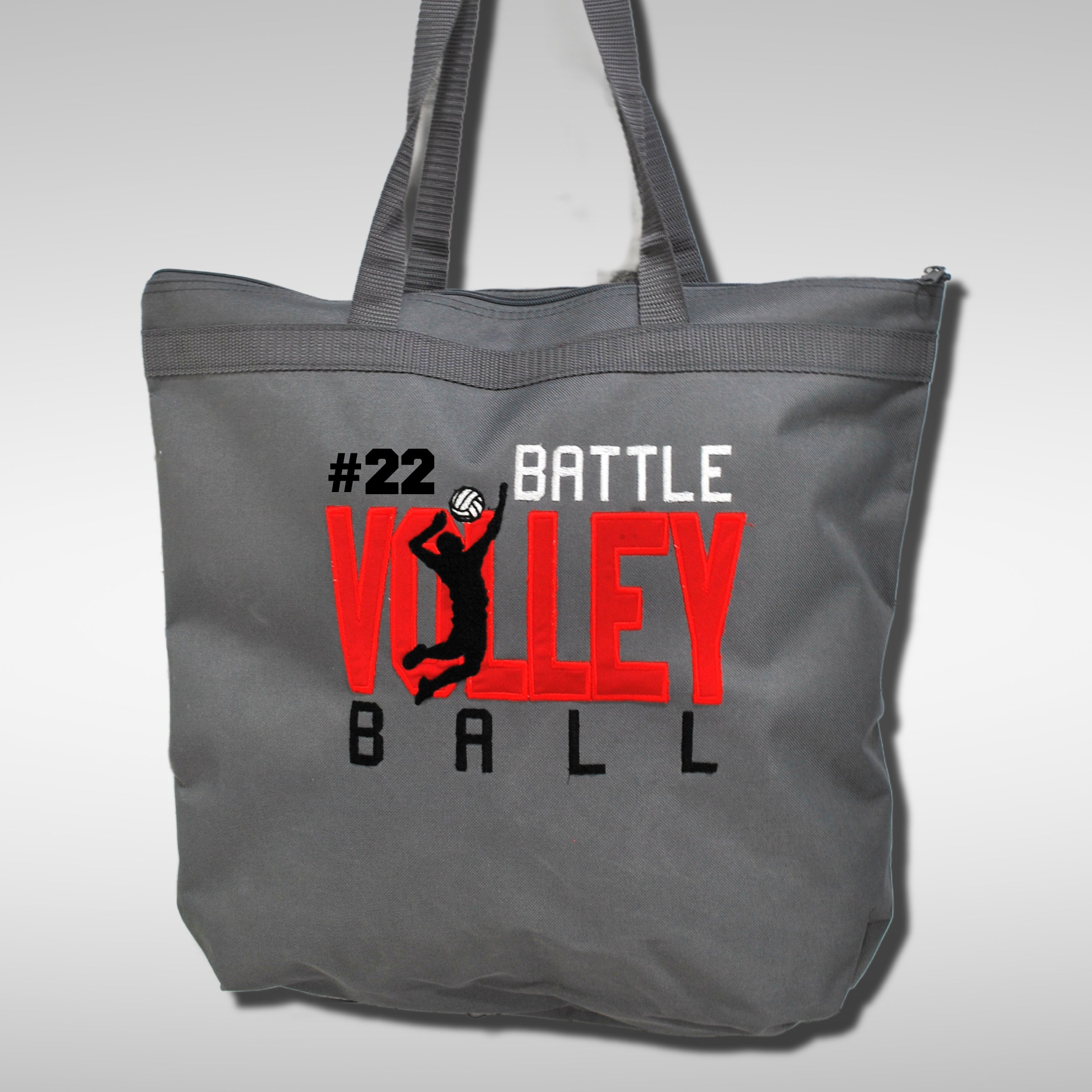 Battle Volleyball tote Bag. Can be personalized with custom jersey number! Made from a sturdy water resistant denier polyester canvas, and with tough zippers and straps, these totes are built to last.
